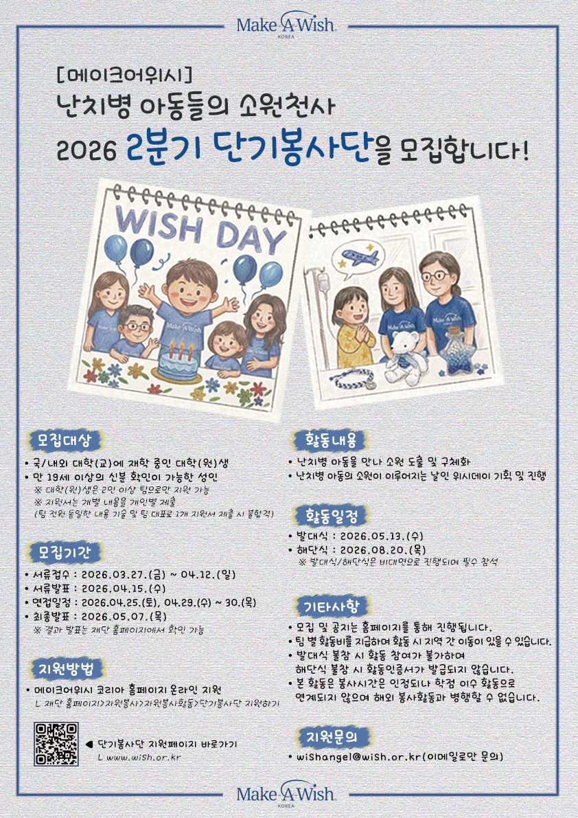 - 메이크어위시 코리아 홈페이지 (www.wish.or.kr) 온라인 지원